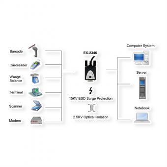 USB Convertisseur de port USB 2.0 vers 1x série RS-422/485, 15KV, EX-2346IS