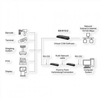 EX-6122-2PoE Ethernet vers série 2 x RS-232/422/485 avec connecteur 9 broches, logiciel Virtual Com inclus PoE