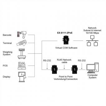 EXSYS EX-6111-2PoE Ethernet PoE vers 1 x port RS-232, Adaptateur secteur 5V/4A