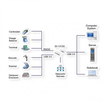 EX-1315IS Station d'accueil USB 3.0, 1x Ethernet Gigabit, 1x RS232