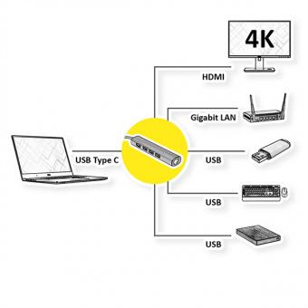 Station d'accueil USB type C, 4K HDMI, 3x USB type A, Gigabit Ethernet, gr