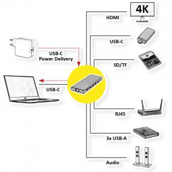Station d'accueil USB type C, HDMI 4K60, 4x US3.2Gen1 (1x C + 3x A), 1x PD, 1x SD/TF, 1x RJ45, 1x 3.5mm