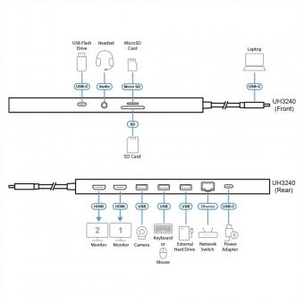 UH3240 Station d'accueil multiport USB-C 11-en-1, avec passage d'alimentation
