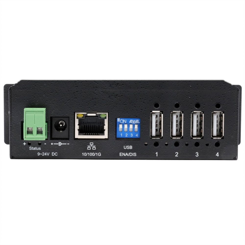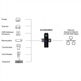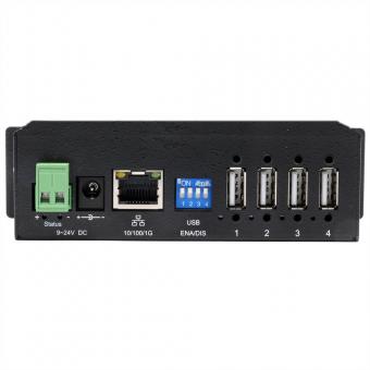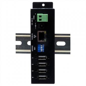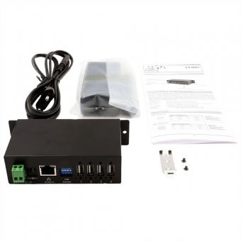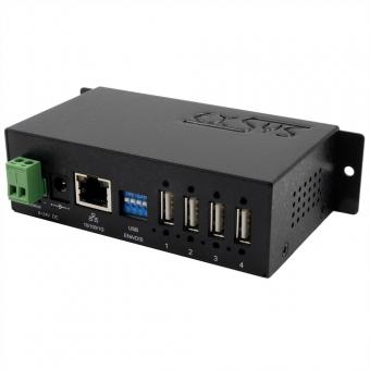 EXSYS EX-6003HMVS Serveur de périphériques 4x USB 2.0, logiciel, bloc d'alimentation et kit rail DIN inclus, entrée 9V-24V DC, boîtier métallique