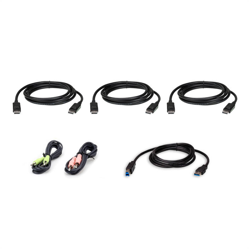 2L-7D02UDPX6 Kit de câbles KVM trois affichages DisplayPort USB, noir, 1,8
