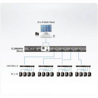 CL3884NW KVM LCD grand écran à double rail et affichage multiple à 4 ports, disposition CH