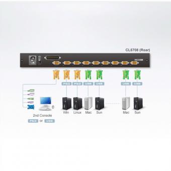 CL5708N Commutateur KVM LCD 48cm, USB-PS/2, VGA, 8 ports, disposition américaine