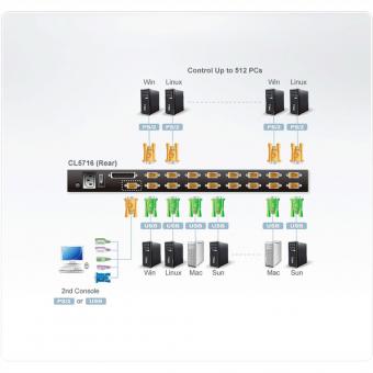 CL5716M Commutateur KVM LCD 43cm, USB-PS/2, VGA, 16 ports, disposition américaine