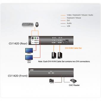 CS1142D Commutateur KVM sécurisé deux affichages DVI USB à 2 ports