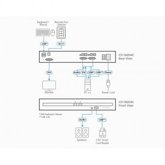 CS1142D4C Commutateur KVM sécurisé à double écran DVI 2 ports USB avec CAC