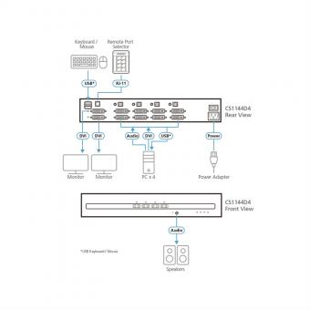 CS1144D4 Commutateur KVM sécurisé DVI à 4 ports USB et double affichage
