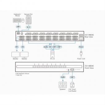 CS1148D4C Commutateur KVM sécurisé à double écran DVI 8 ports USB avec CAC
