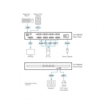 CS1184D4C Commutateur KVM sécurisé DVI à 4 ports USB avec CAC