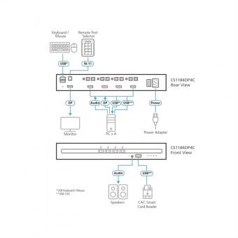 CS1184DP4C Commutateur KVM sécurisé DisplayPort à 4 ports USB avec CAC