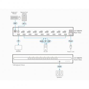 CS1188DP4 Commutateur KVM sécurisé DisplayPort 8 ports USB
