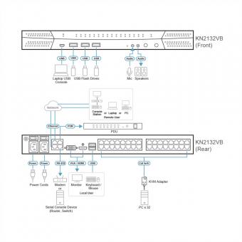 KN2132VB Commutateur KVM sur IP 32 ports Cat.5 multi-interface, 1 local/2 distant