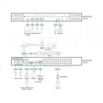KN4024VB Commutateur KVM sur IP 24 ports Cat.5 Multi-Interface, 1 local/4 distant