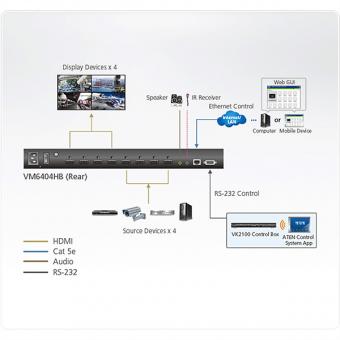 VM6404HB Commutateur matriciel HDMI True 4K 4 x 4 avec ajusteur