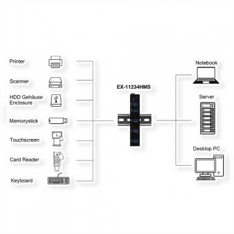 EX-11234HMS HUB 4 ports USB 3.2 Gen 1 Din-Rail Kit et mur VIA VL811+ Chipset
