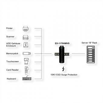 EX-1170HMVS Hub métallique USB 2.0 à 10 ports, protection contre les surtensions 15kV