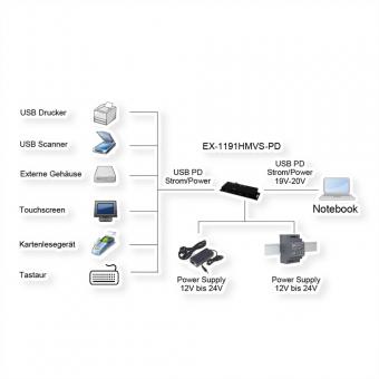 EX-1191HMVS-PD Hub métallique USB 3.2 Gen 1 à 4 ports, avec recharge USB-PD