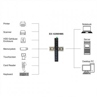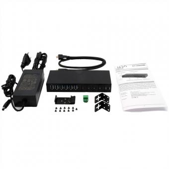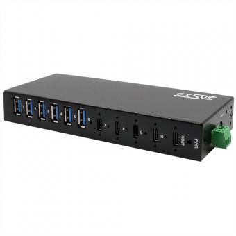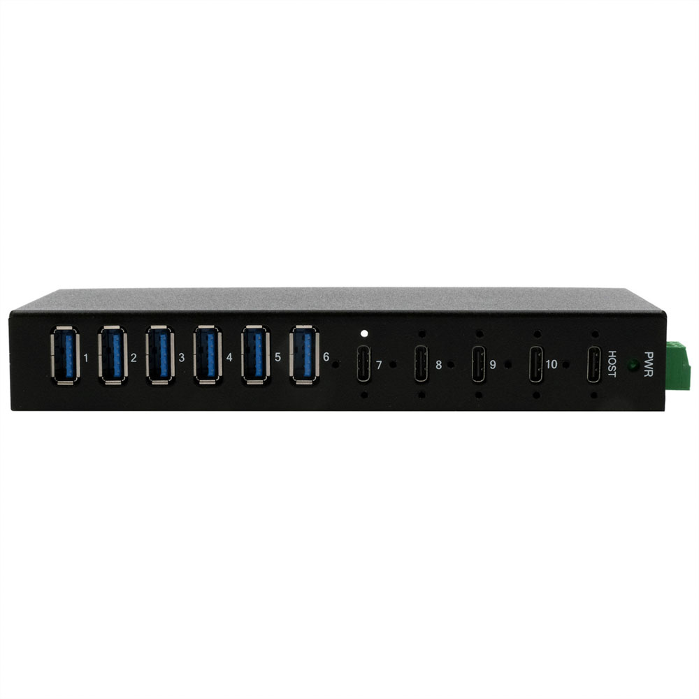 EXSYS EX-12290HMS HUB métallique 10 ports USB 3.2 Gen 2x1, 4x USB-C et 6x USB-A 3.2 Gen 1, pour table, mur et rail DIN