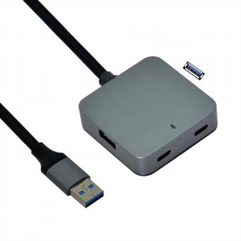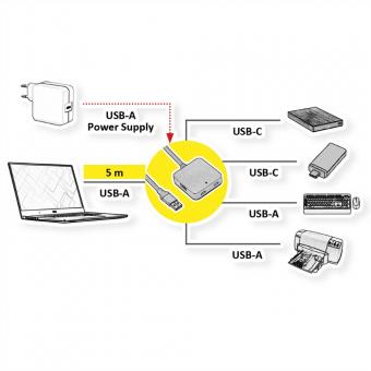 Hub USB 3.2 Gen1 à 4 ports (2x A + 2x C) avec câble prolongateur, 5m