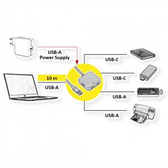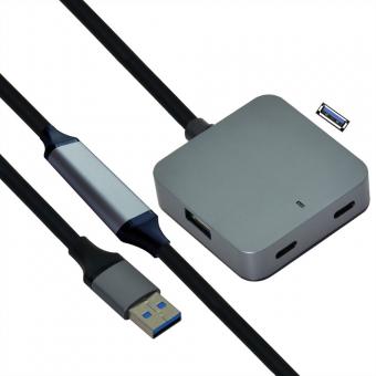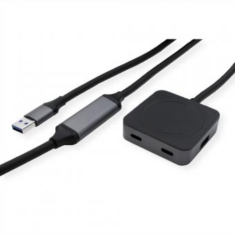 Hub USB 3.2 Gen1, 4 ports (2x A+ 2x C) avec câble prolongateur, noir, 10m