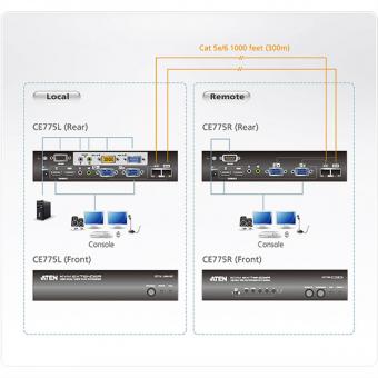 CE775 Prolongateur KVM Dual View VGA USB, audio, RS-232