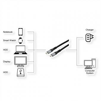 EX-K1598-1.0 Câble USB 4.0 Connecteur USB-C, 5A, 40Gbit/s, 240W , noir, 1m