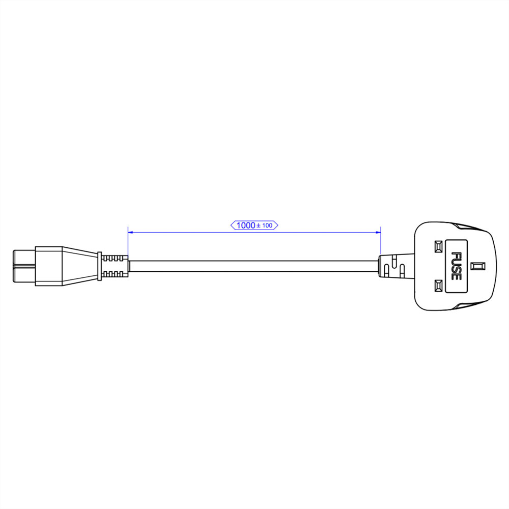 H05VV-F 3G0,75mm² noir L : 1,0m, UK/IEC C5