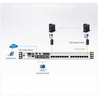 Le KL1516Ai donne aux sysops locaux et distants la possibilité de surveiller et de contrôler plusieurs ordinateurs sur un réseau IP. Parce qu'il utilise le protocole TCP/IP pour la communication, le KL1516Ai peut être utilisé depuis n'importe quel ordinateur sur le réseau local, le réseau étendu ou l'Internet - qu'il soit dans la même pièce, de l'autre côté de la rue ou sur un autre continent.
