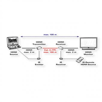 Prolongateur HDMI via Twisted Pair, en cascade, Cat.5/6, 100m