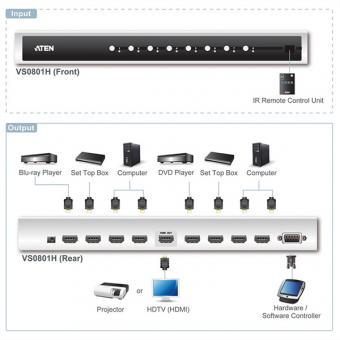 VS0801H Switch HDMI-A/V 8 ports et télécommande infrarouge