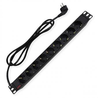 Bâti de prises 19 pouces, 9x, noir, 2,0m