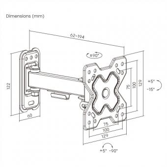 Bras TV mural pivotant, 2 axes, 13-32 pouces, jusqu'à 20kg