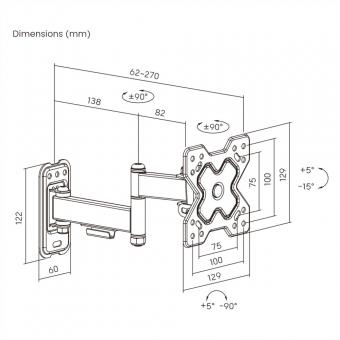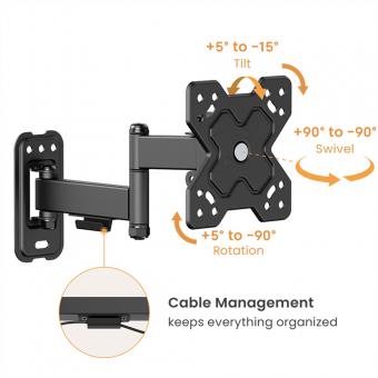 Bras TV mural pivotant, 3 axes, 13-32 pouces, jusqu'à 20kg