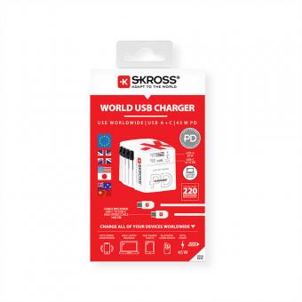 Chargeur USB universel A/C 45PD avec câble USB-C, monde