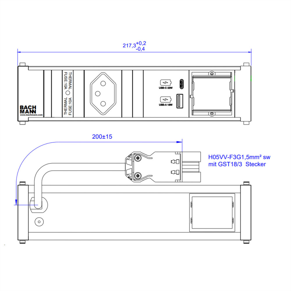 CONI 1xCH 1xUSB A&C 22W, 1xCM 0,2m GST18 Suisse