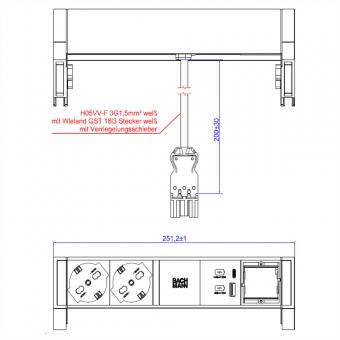 DESK2 blanc 2xP40 1xinterrupteur 1xUSB A/C 22W 1xCM 0,2m GST18