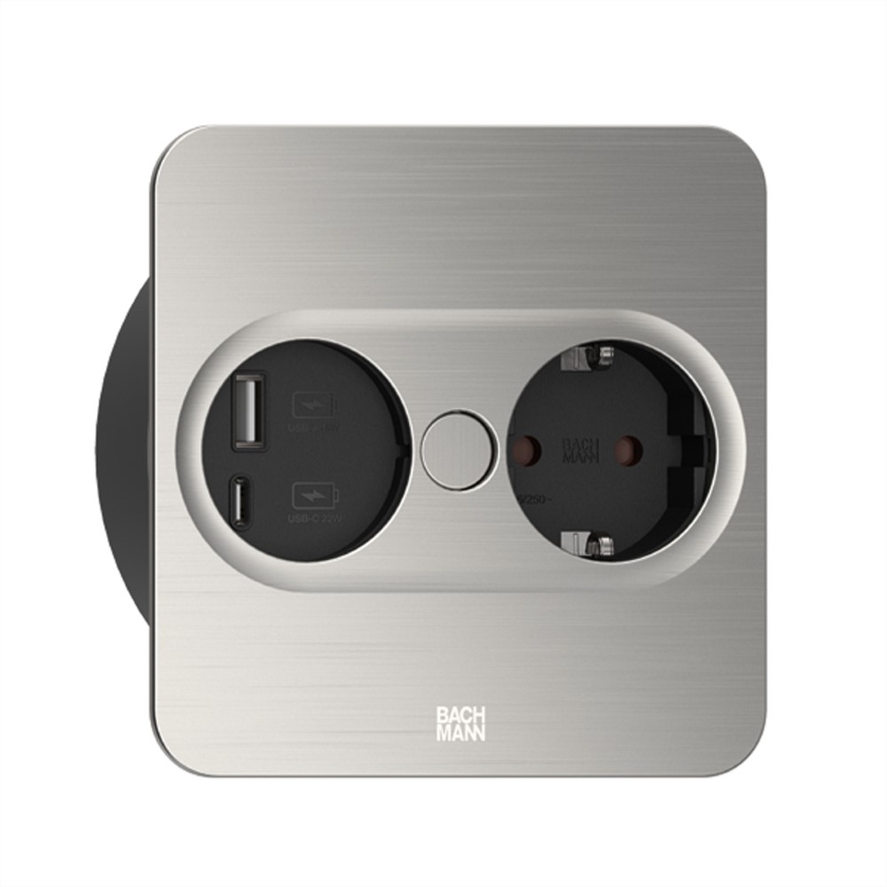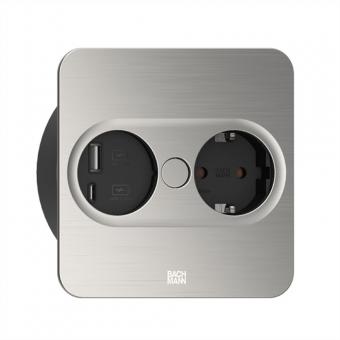 TWIST 2 1xCEE7/3 1xUSB A/C 22W 2,0m AEH aspect inox carré