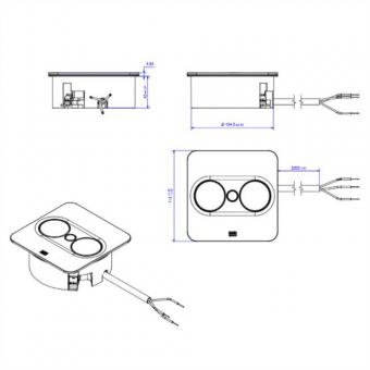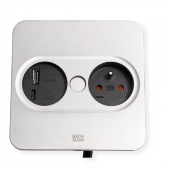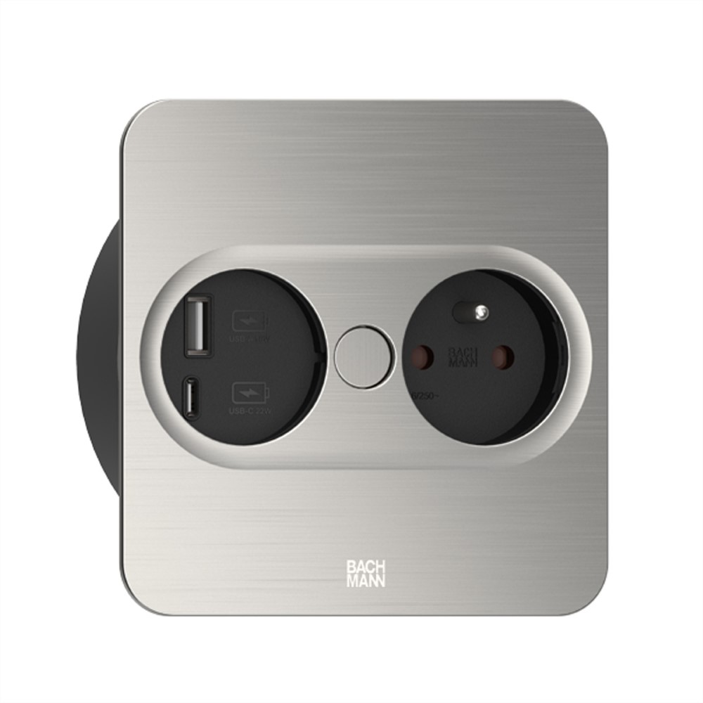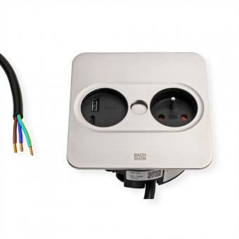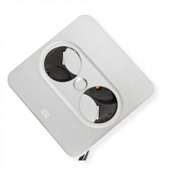 TWIST 2 1xUTE 1xUSB A/C 22W 2,0m AEH aspect acier inoxydable carré