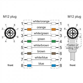 Câble Ethernet industriel M12 droit-coudé, codage X, 1m