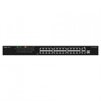 24 ports 10/100Mbit/s + 2 ports 10/100/1000Mbit/s, 24 ports PoE+ 802.3af/at / puissance totale 370W, isolation des ports / contrôle de flux / surveillance PoE, Plug-and-Play