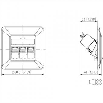 C6Amodul 3 ports 180°M Boîtier encastré, blanc pur RAL9010
