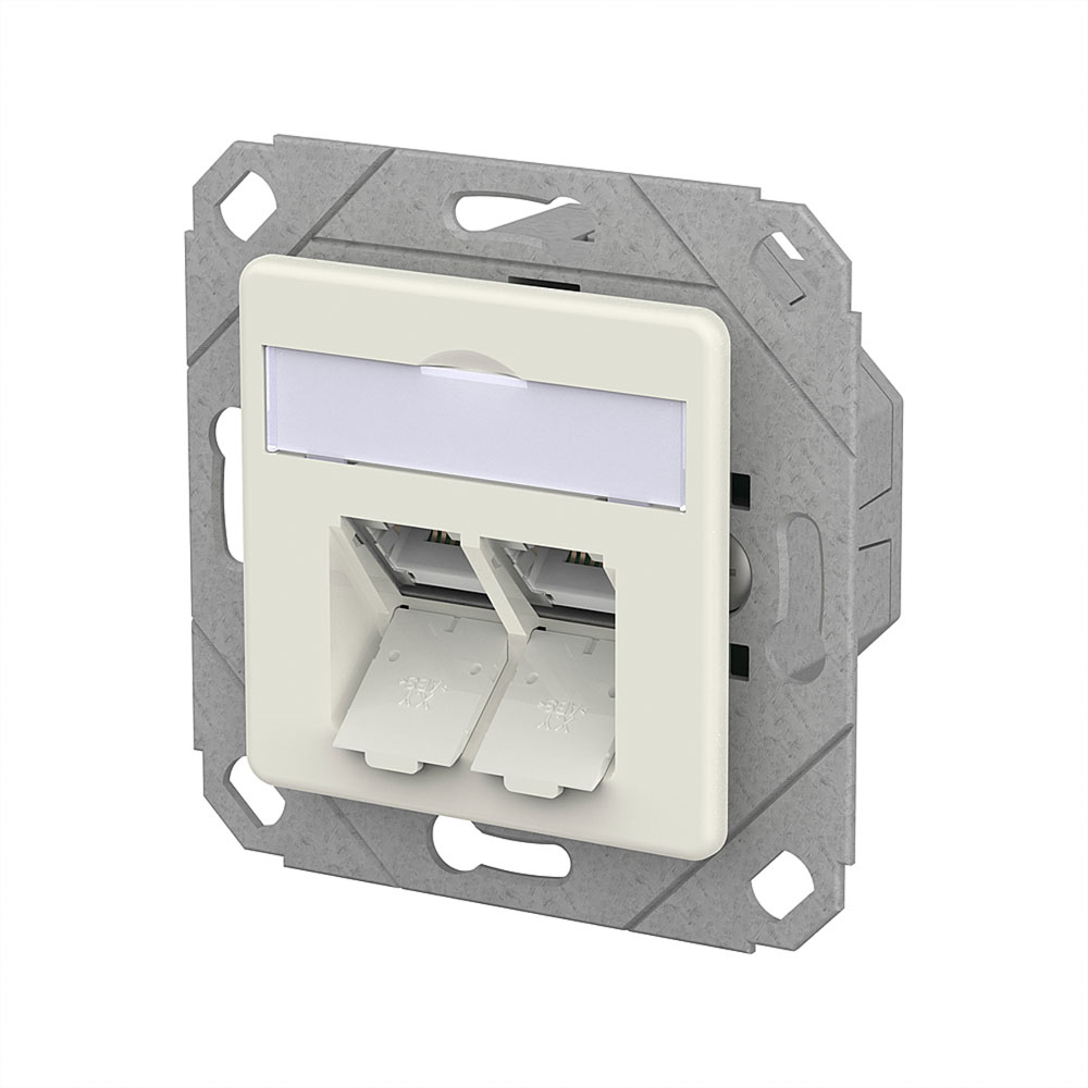E-DAT C6A LSA++ Prise, 2 ports, goulotte encastrée (UPk), blanc pur
