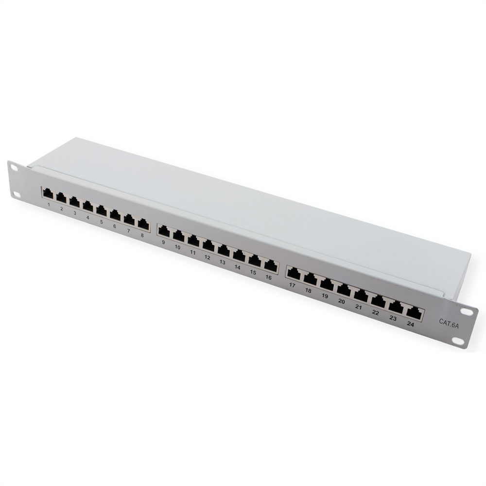 Panneau de brassage Cat.6A (Classe EA) 19-pouces, 24 ports, STP, gris